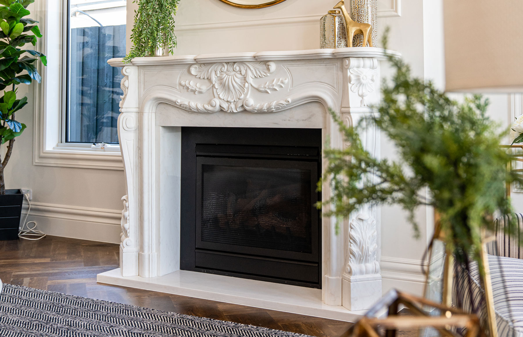 Highly decorative, with wreaths and garlands featured throughout, this distinctive mantel is inspired by the grand British homes in the Queen Anne style of the 18th century.