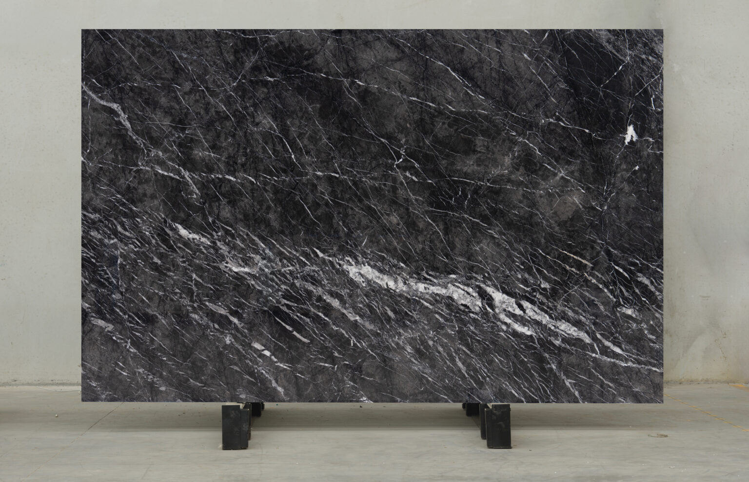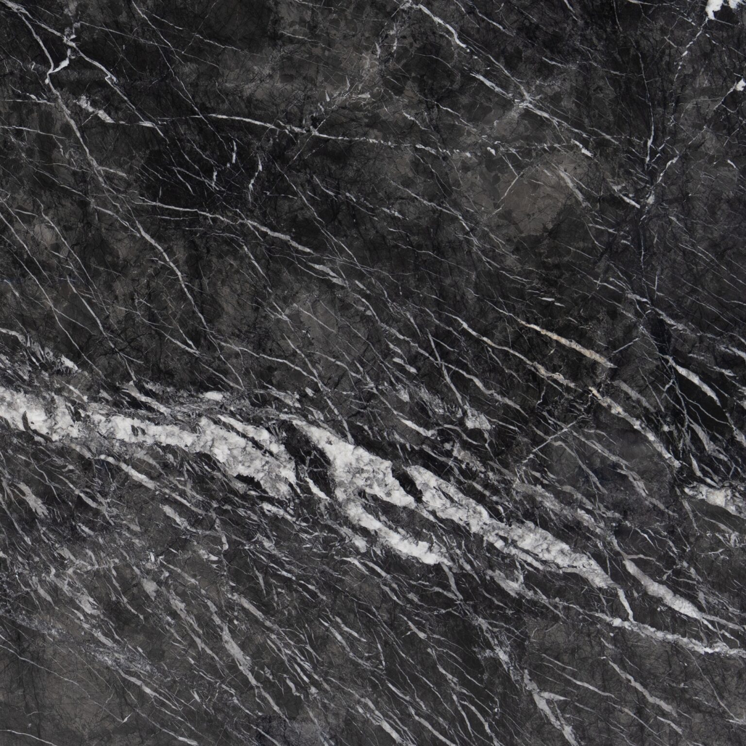 Grigio Carnico, drawn from northern Italy, speaks in shadow and definition. Charcoal and deep grey form layered strata, cut by decisive white veins with exacting clarity. Light punctuates darkness in measured intervals, creating structure and discipline. In interiors, it grounds spaces with strength, clarity, and unmistakable authority.