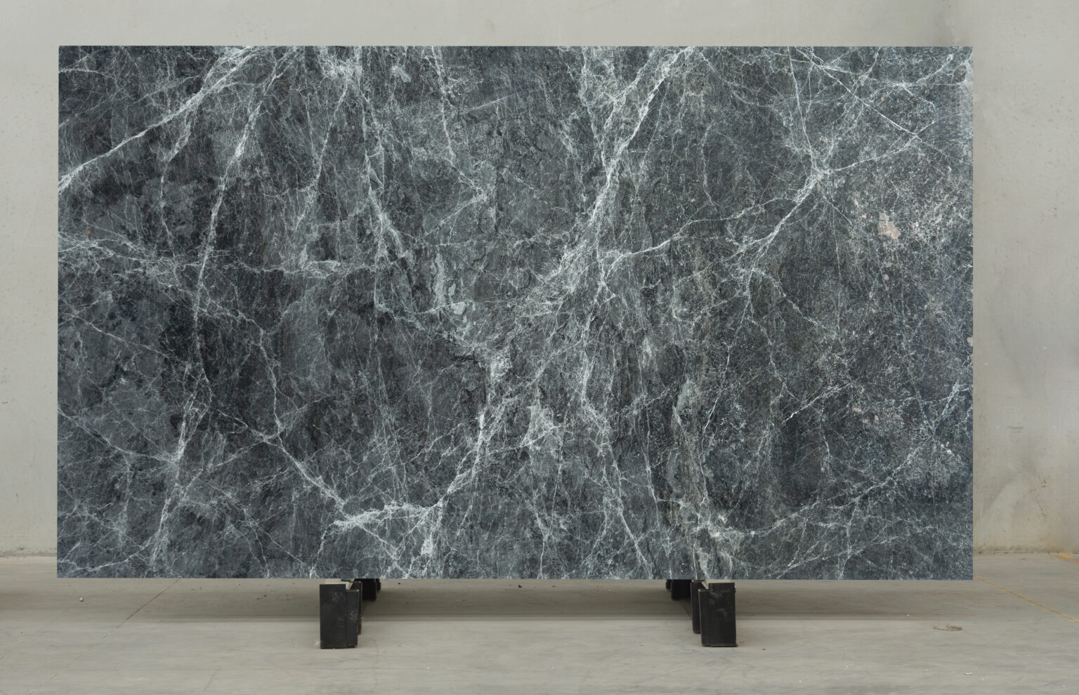 Grigio Copernico features fine white veins moving restlessly through a deep grey ground, branching, intersecting, and redirecting in spontaneous paths. No single line dominates; a living network forms through cycles of pressure and release over time. Quietly mesmerising, it brings intrigue and composure—drama expressed through pattern, movement, and unmistakable refinement.