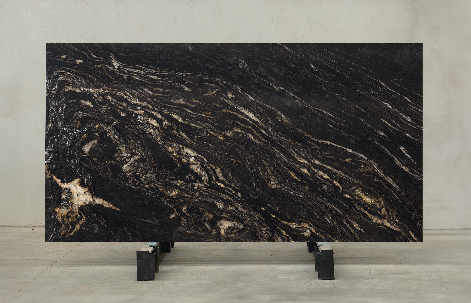 Just spectacular. This is the visual impact of Infinity Gold, a Brazilian Granite that demands attention and creates a sensation in any interior space. Its combination of rich earthy tones, blacks and intricate gold veining add a sense of warmth and indulgence to a space. Ideal for luxury homes and commercial projects. Currently experiencing a resurgence in popularity, this stone is particularly suited to statement benchtop, vanity, feature wall or floor.