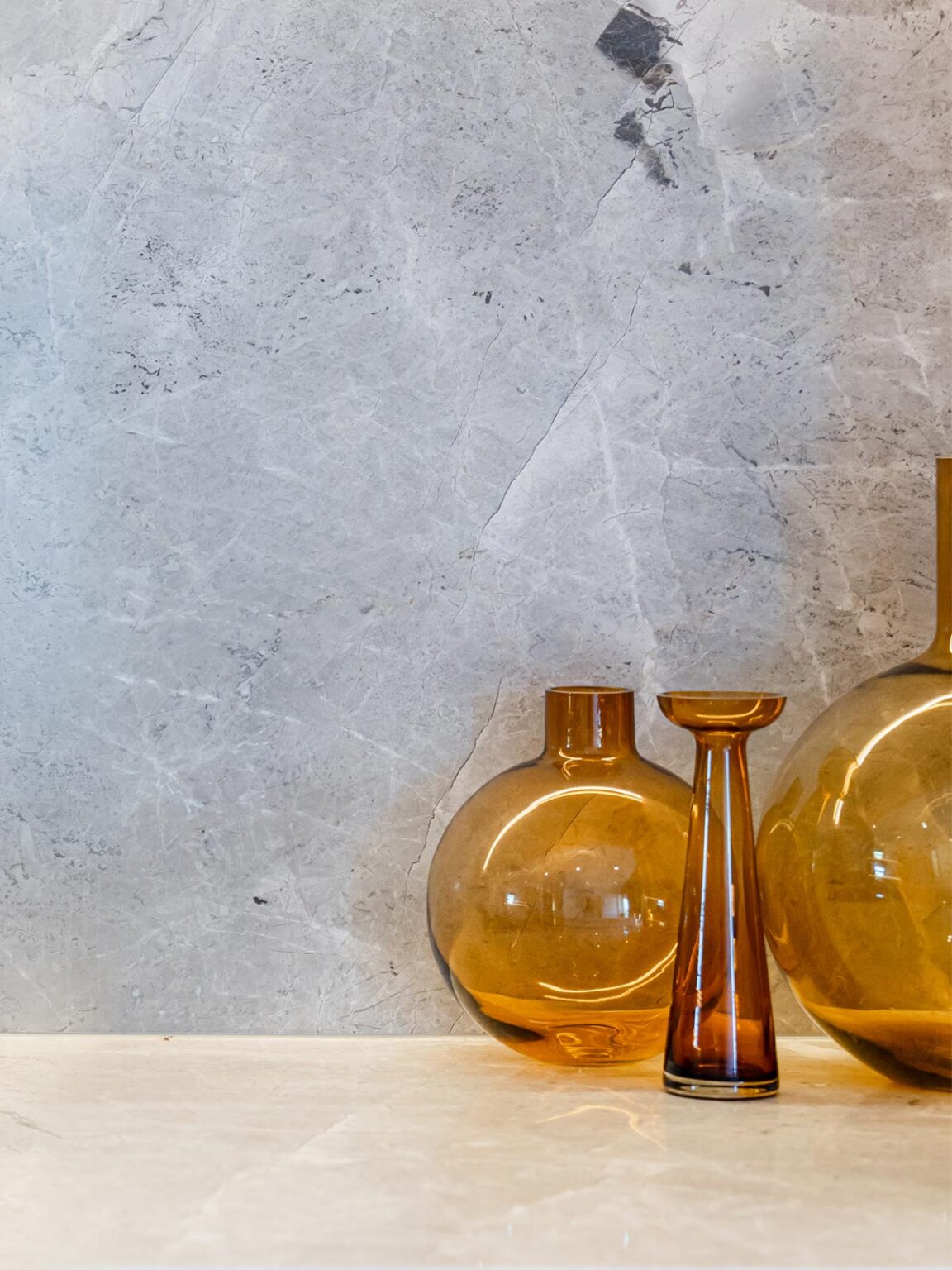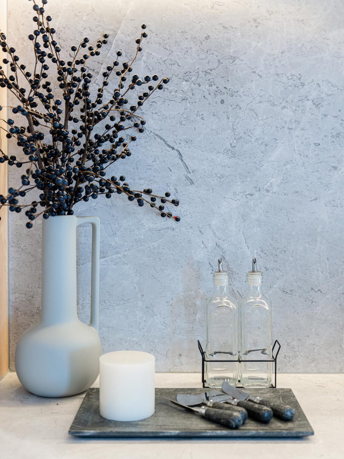 Each of these 24 luxurious apartments features Aqua Luna stone slabs on the kitchen and island benchtops, pantry bench, splashback and bathroom vanity. Aqua Luna’s cool, delicate waves of silver-grey veining complement the apartments’ neutral palette, creating a sense of visual interest and movement.