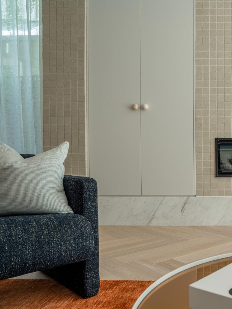 The Kew House project is a testament to our expertise in fabrication and installation. The challenge of shaping the Calacatta Antica island kitchen bench and Breccia Capraia bathroom vanity into perfect curves was met with precision. Our skilful craftsmanship ensured the smoothest of curves, virtually invisible splicing, and exact matching of veining, resulting in a flawless finish.
