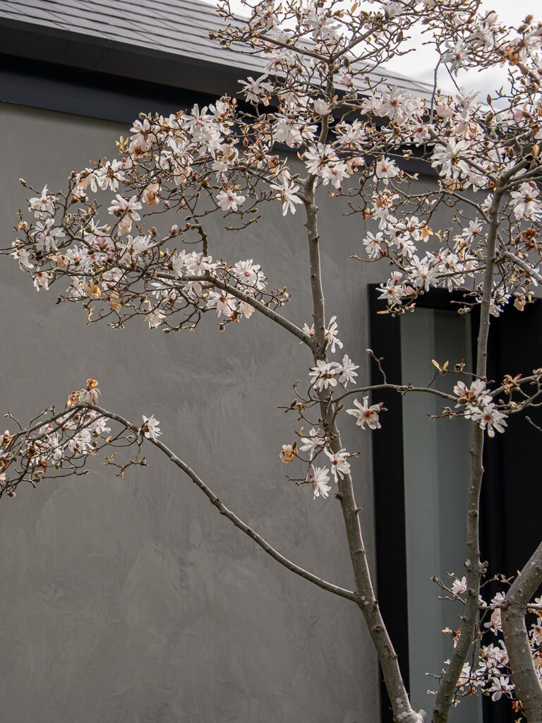Eye catching stone details abound throughout this new home. In the kitchen, Pietra Grey stone benchtops, with shadow line and bookmatch waterfall features take centre stage. While in the bathroom, Super White dolomite stone is a highlight, with bespoke, fully integrated sink and custom sized wall tiles. Step outside to slip-resistant pool pavers in Bluestone, accented by Black Sesame Granite tiles, pebbles and boulders with a split finish, creating a tranquil, Japanese Zen Garden ambiance.